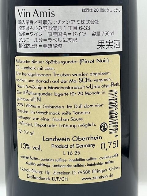 ワイナリーの古い畑名からつけられたこのシュペートブルグンダーは中古の小樽で20か月の熟成を経てノンフィルターでリリースされます。魅力的な香りと奥行きのある味わい、旨味が楽しめます。